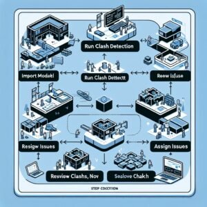 Proactive clash detection involves leveraging BIM software to identify and resolve clashes before construction begins. Here’s a typical workflow: